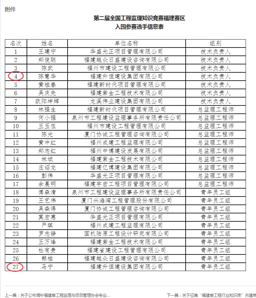 2025年9月26日,第二届全国工程监理知识竞赛福建赛区选拔赛圆满结束。我司两名技术骨干凭借扎实的专业能力和出色表现,在技术负责人组和青年员工组中均以排名前十的成绩晋级全国决赛。